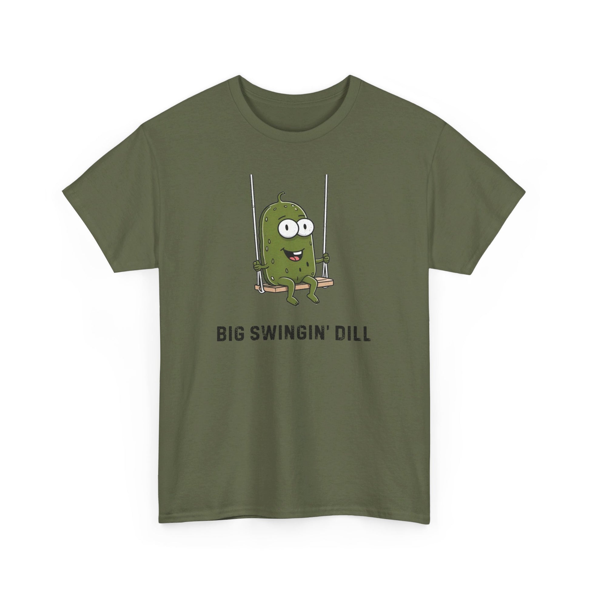 Look out, here comes the Big Swingin' Di...oh, it says Dill! SHOCK your friends and catch the look on their face when they read this silly t-shirt.